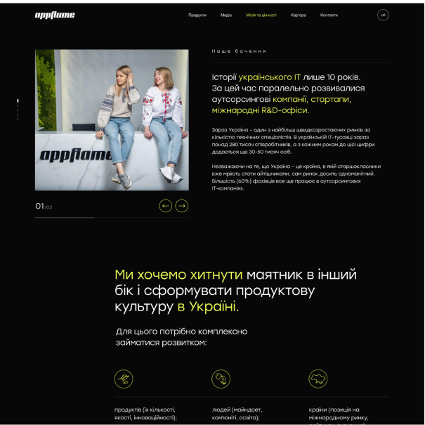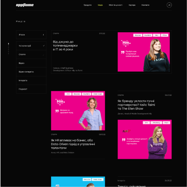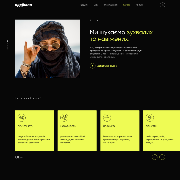 Ми розробили дизайн 8 сторінок, дотримуючись єдиного стилю та сучаснох норм та тенденцій дизайну інтерфейсів, забезпечуючи зручне використання сайту