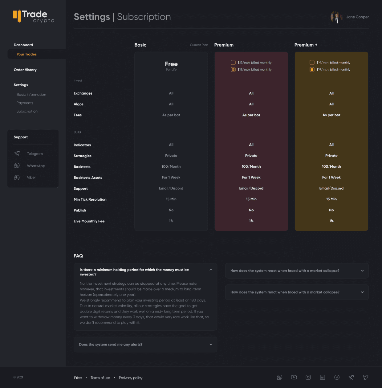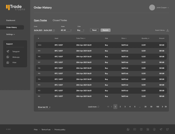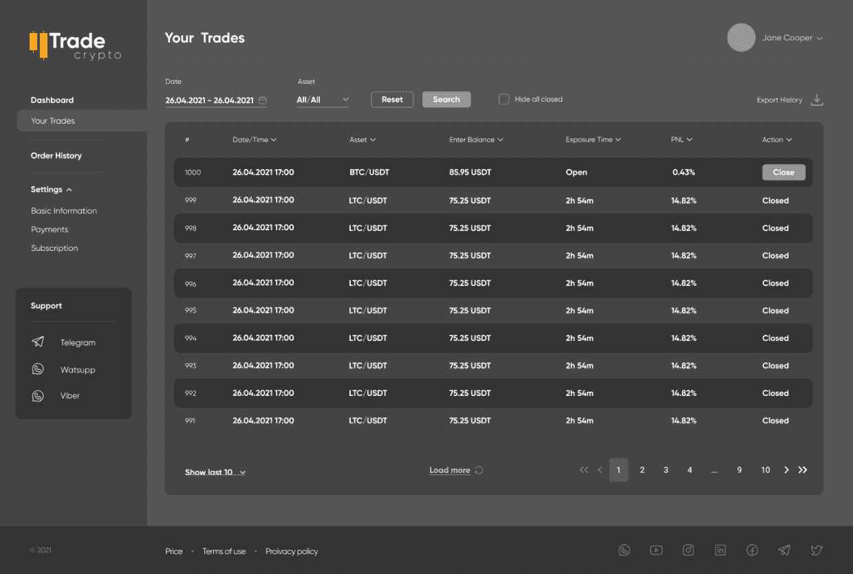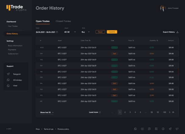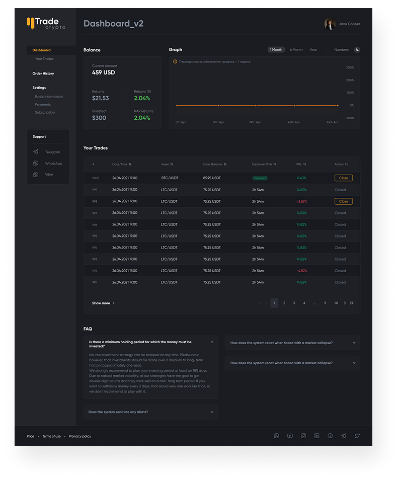 фіатних та криптофіатних валют, відстеження процесу інвестування, а також виведення коштів в
