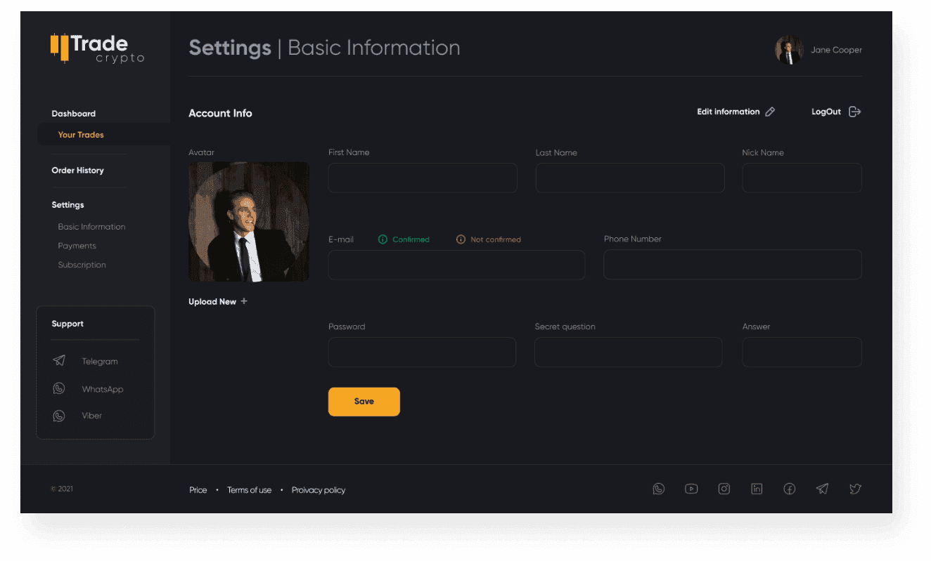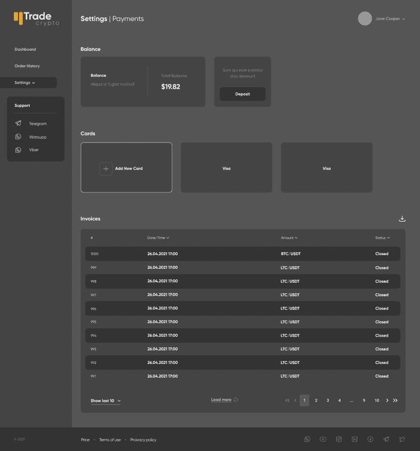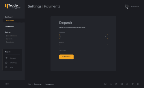 Сайт направлений на інвестування криптовалюти в торги. Поповнення рахунку за допомогою