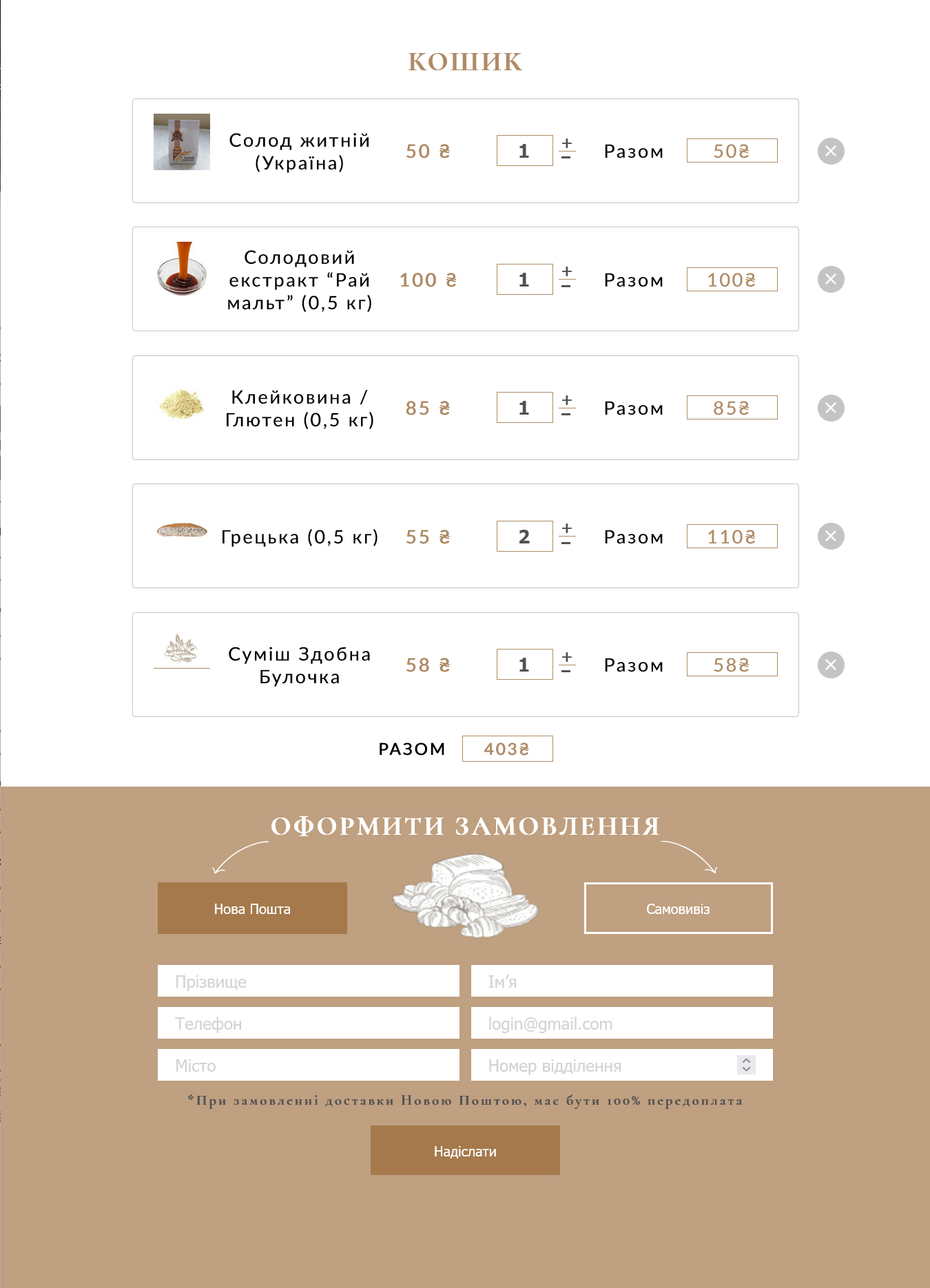 Інтернет-магазин з продажу свіжоспеченого хліба.
