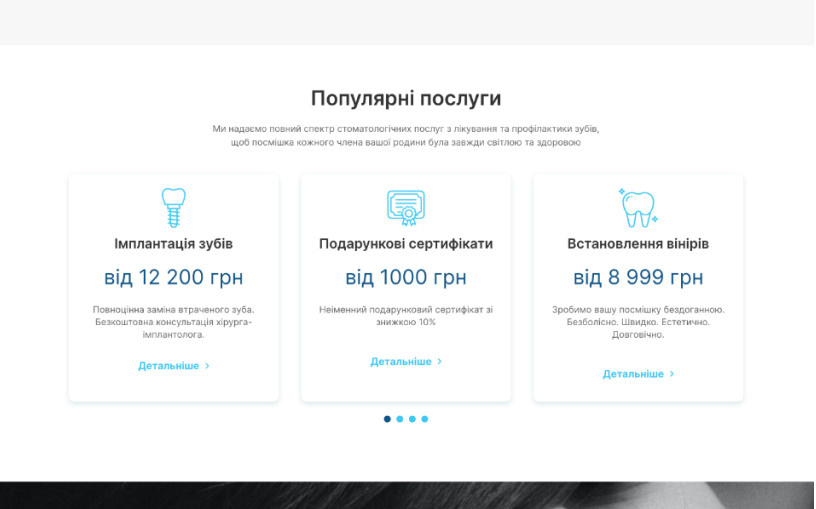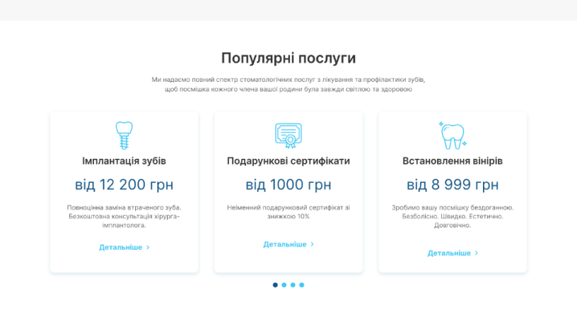 - 2. На сайті регулярно публікуються спеціальні пропозиції та знижки на стоматологічні послуги, що стимулює відвідувачів до запису на прийом.