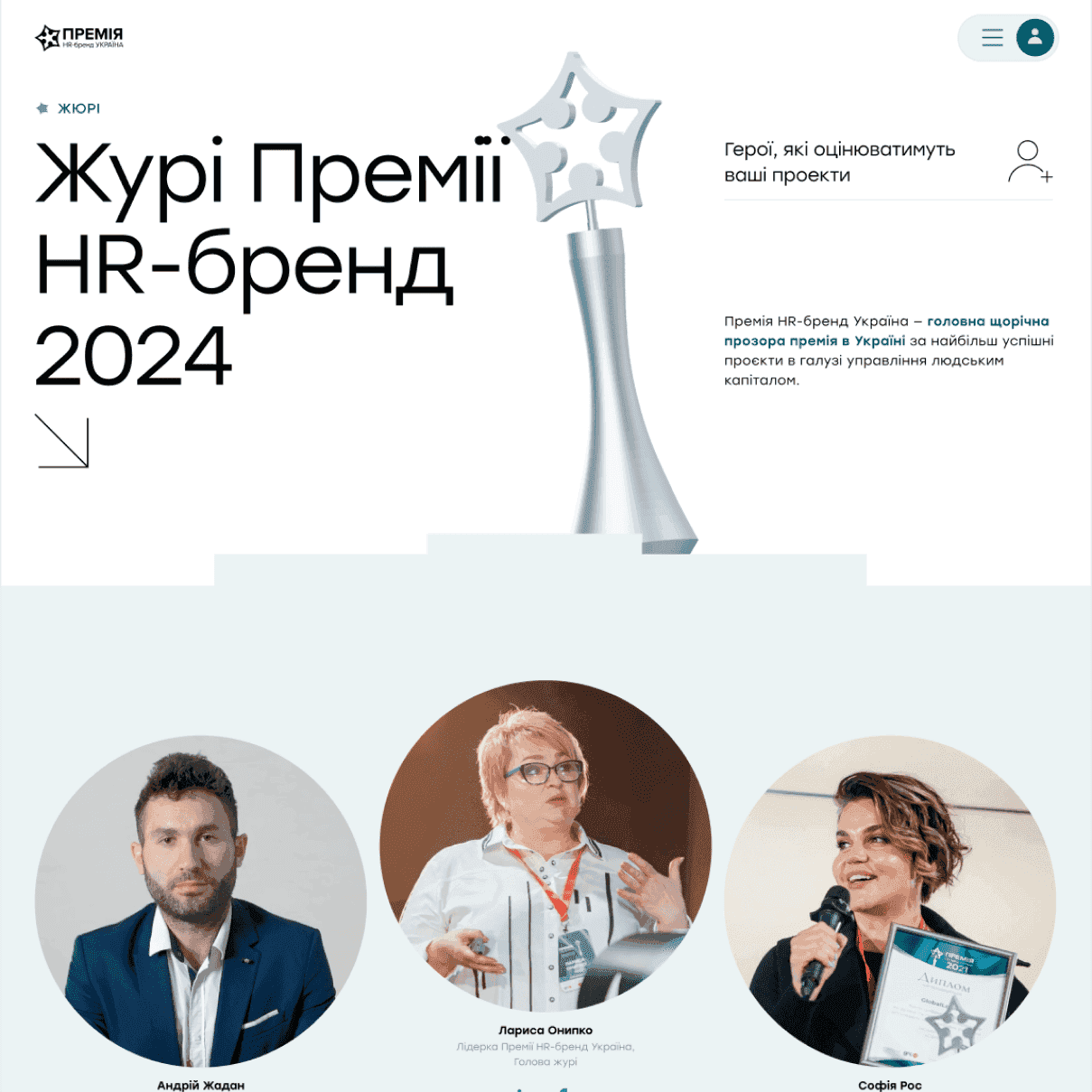 Сайт створений для премії HR-бренд Україна, яка відзначає найбільш успішні проєкти у сфері управління людським капіталом, а також репутацією та іміджем компаній як роботодавців.