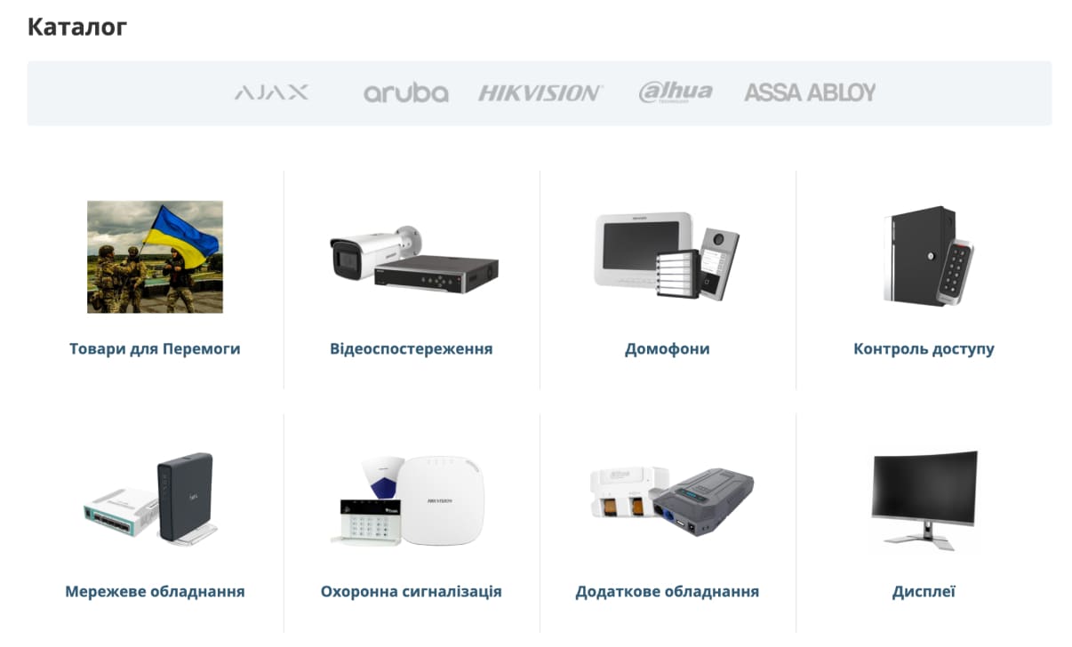 Сайт включає структуровані розділи для всіх типів систем безпеки, що пропонує компанія. Інтуїтивно зрозуміла навігація дозволяє користувачам швидко знаходити потрібні товари та ознайомлюватися з їх характеристиками. Це робить процес вибору продукції максимально зручним та ефективним.