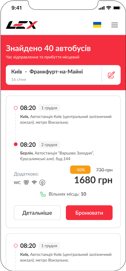 Клієнти можуть легко вибирати маршрути, бронювати квитки та отримувати необхідну інформацію про поїздки.