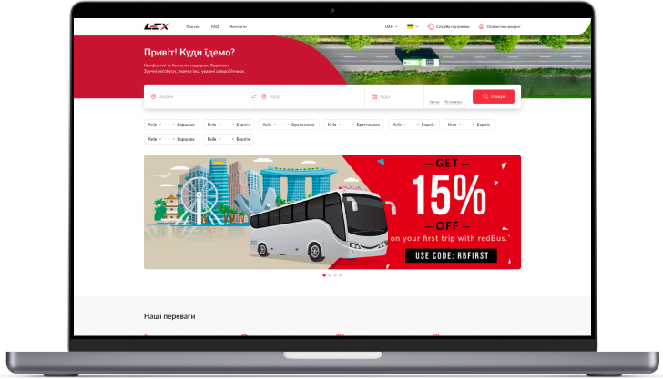 Сайт створений для замовлення автобусних рейсів, забезпечуючи зручний та інтуїтивний інтерфейс для користувачів.