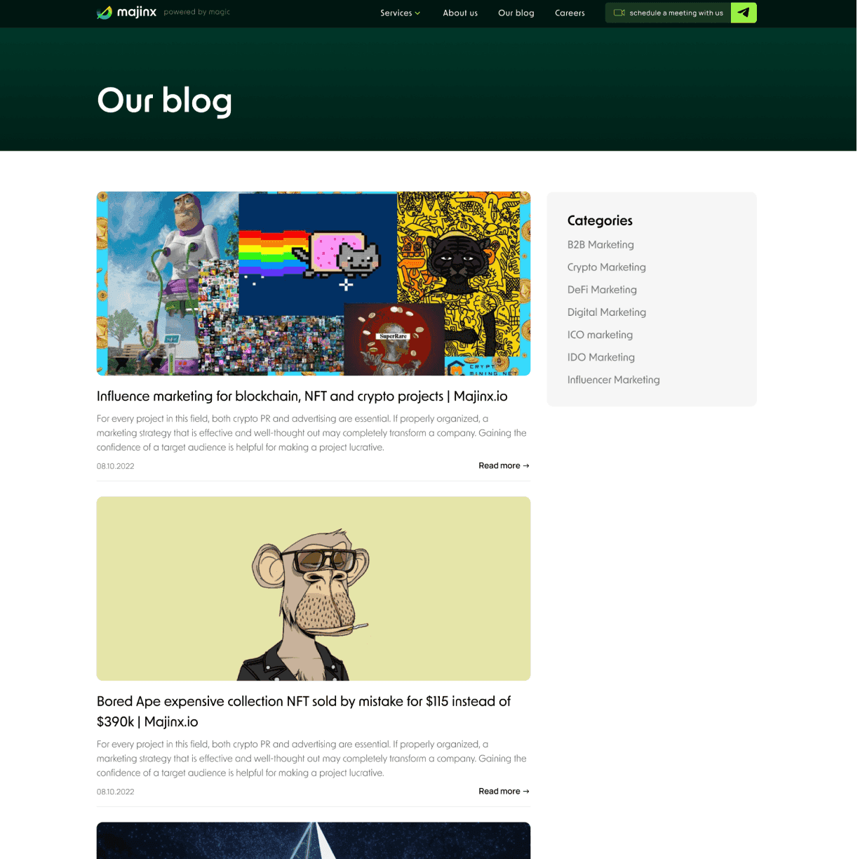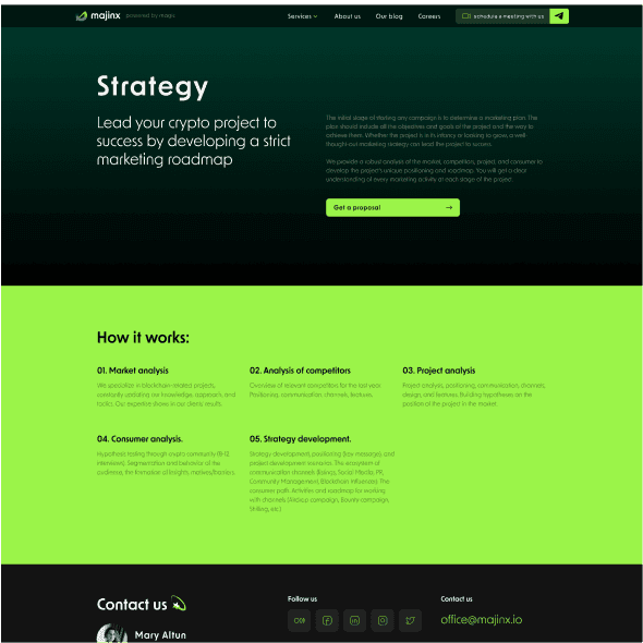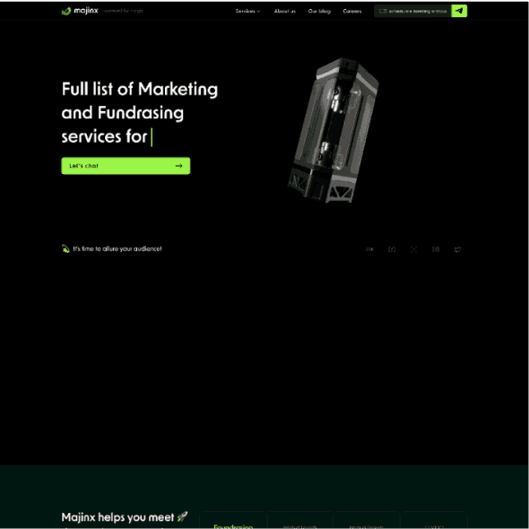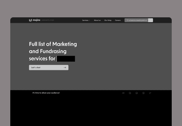 Командою NDC було розроблено корпоративний веб-сайт для маркетингового агентства Majinx, яке спеціалізується на наданні повного спектру маркетингових послуг, включаючи стратегічний маркетинг, цифрову рекламу, SMM, SEO та багато іншого.