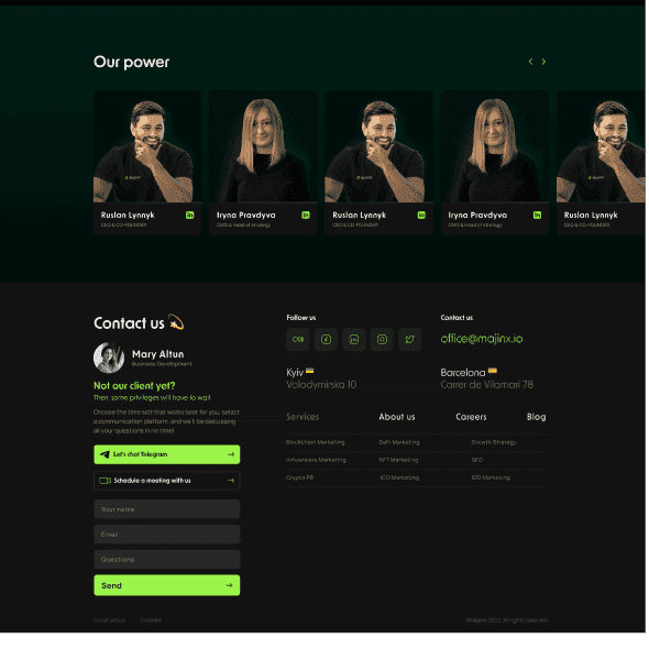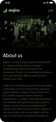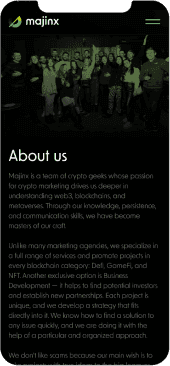 Сайт Majinx.io розроблений з урахуванням адаптивного дизайну, що забезпечує його коректне відображення та функціонування на різних пристроях – від комп'ютерів до смартфонів та планшетів.