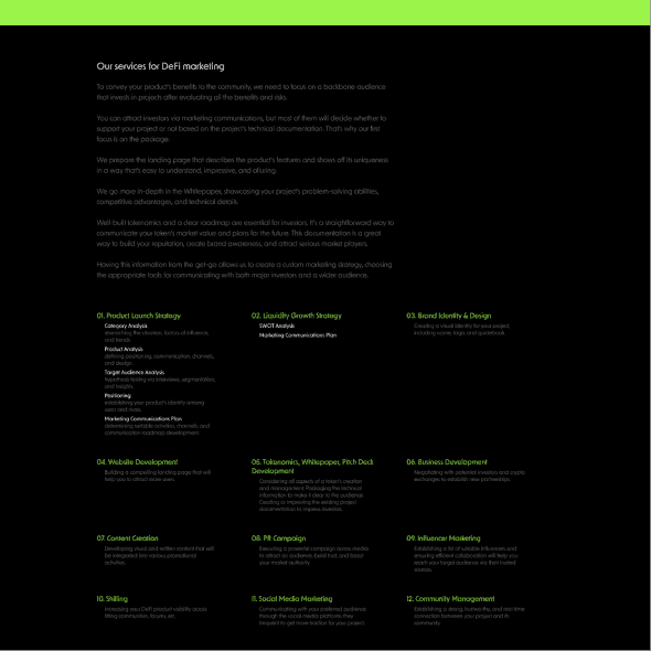Використовуються яскраві кольори, динамічні елементи та креативні графічні рішення, що відображають інноваційний підхід агентства до маркетингу.
