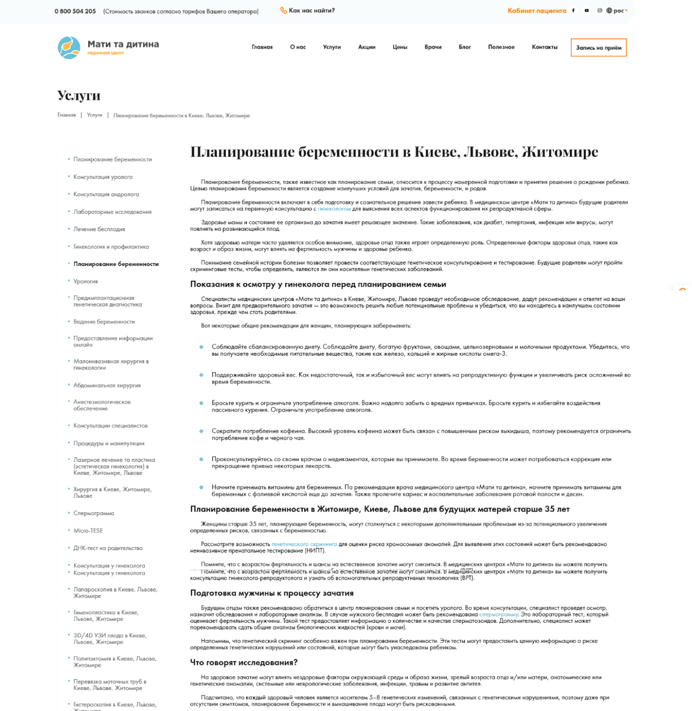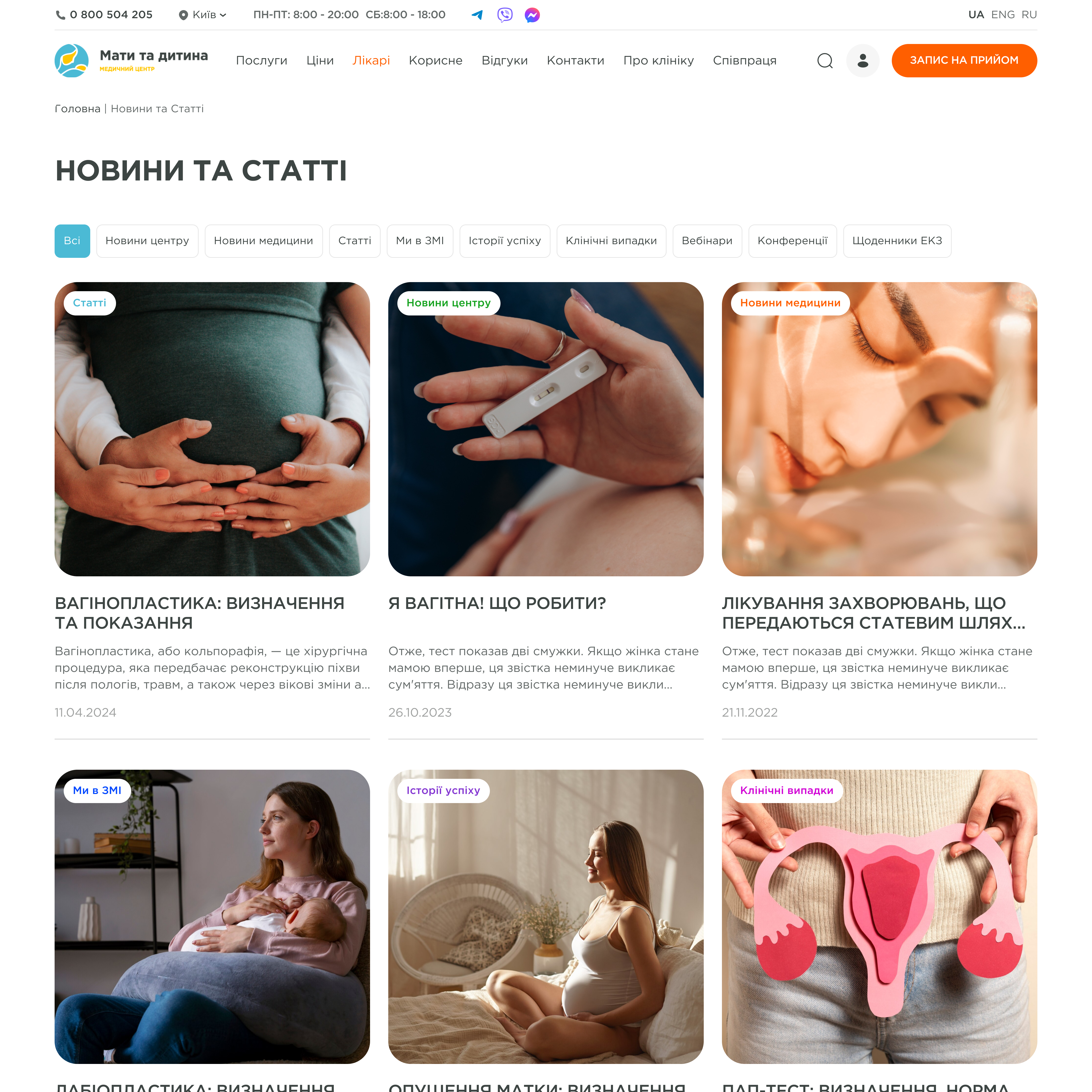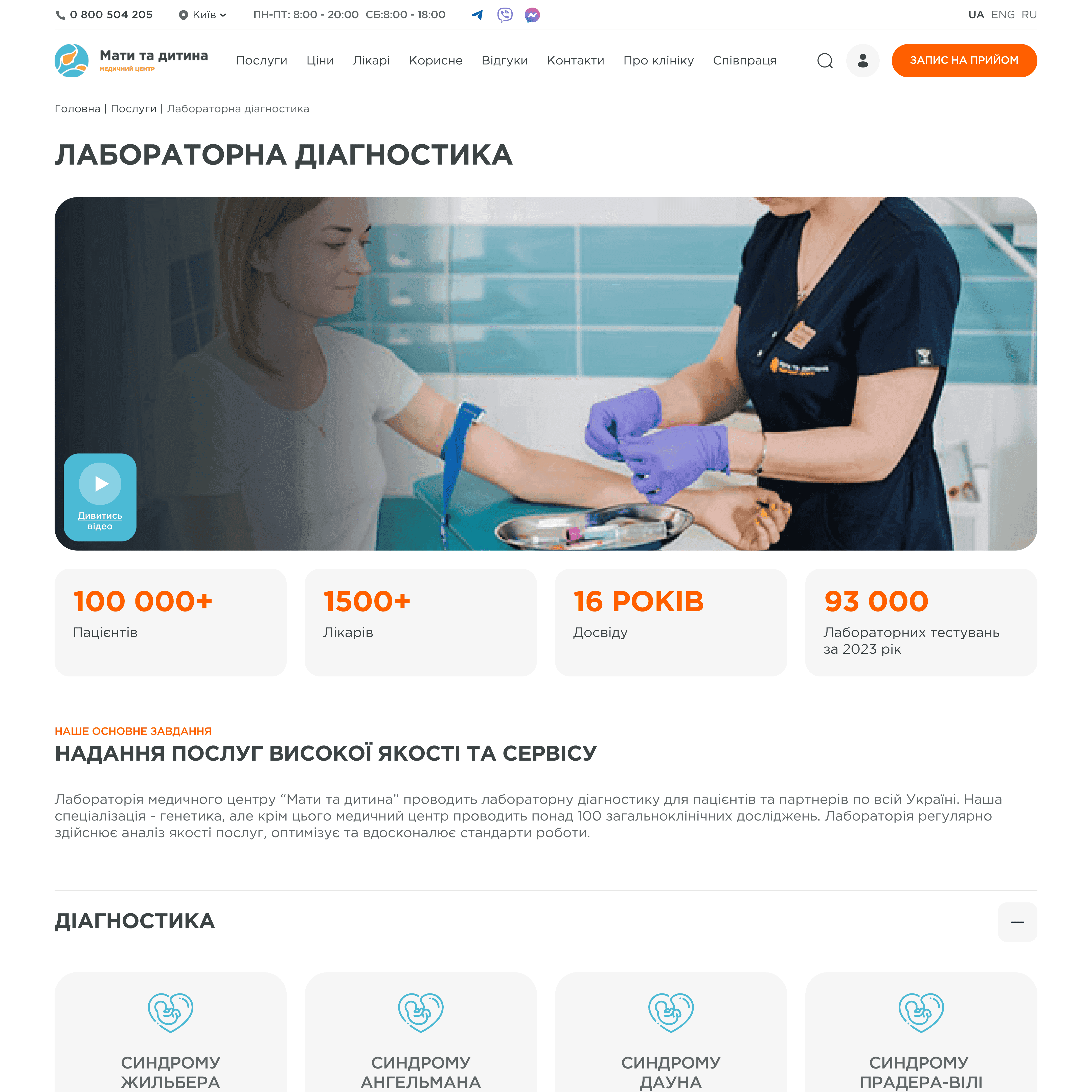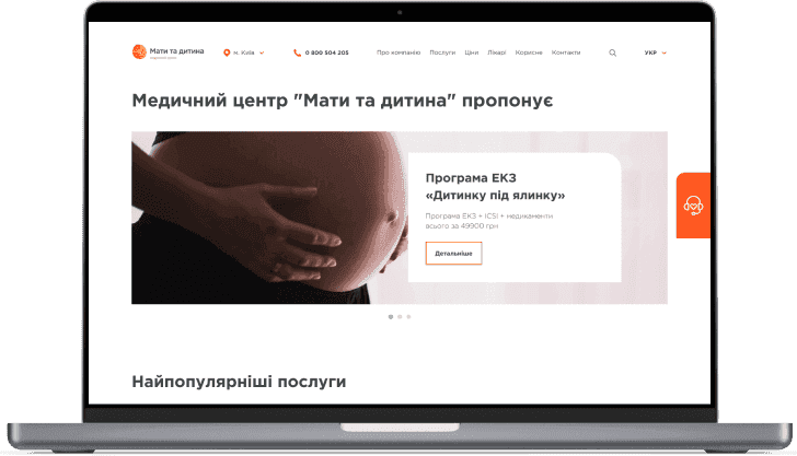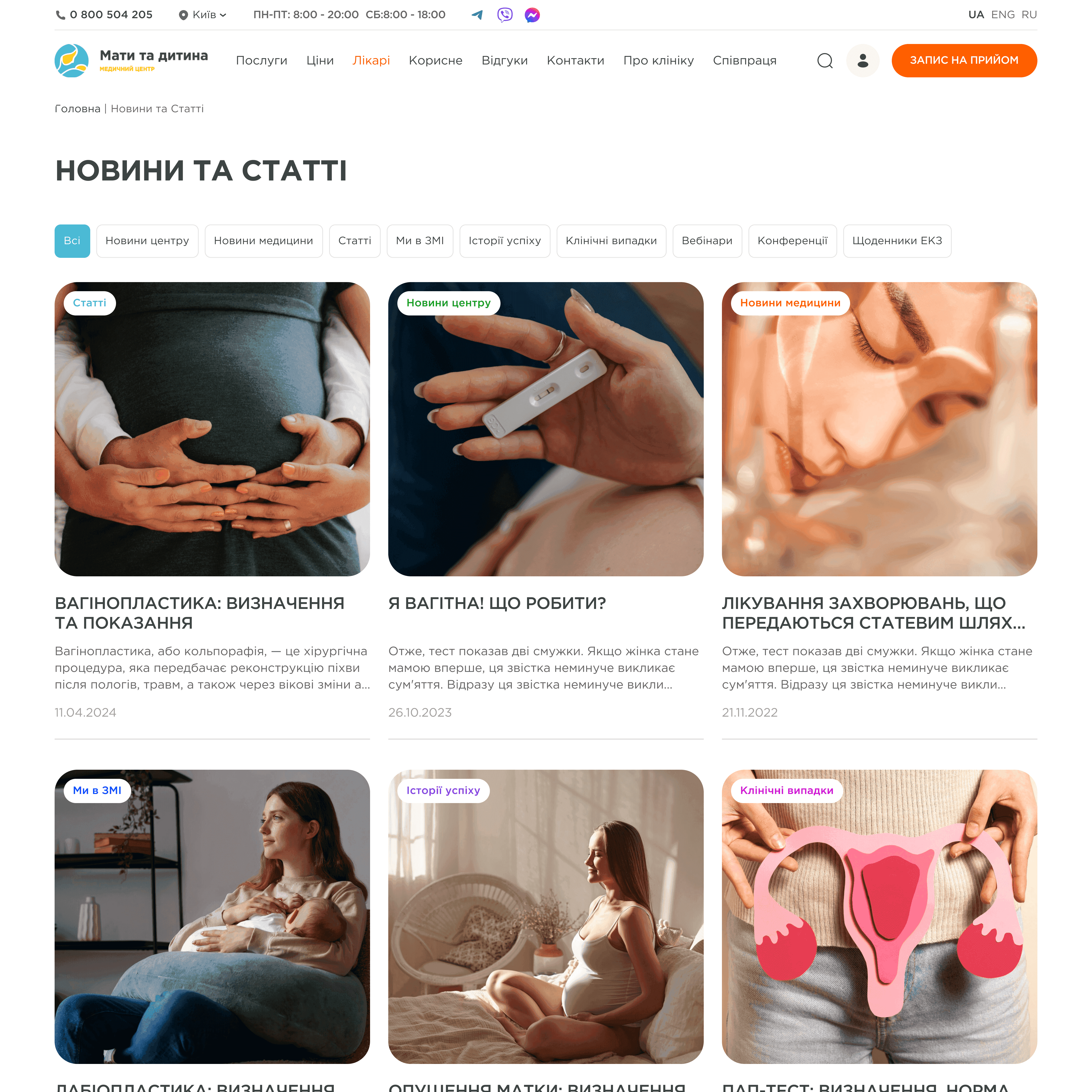 Цей сайт розроблений для медичного центру Мати та Дитина, з метою представлення її послуг, лікарів та можливостей для пацієнтів. Сайт містить інформацію про клініку, її спеціалізації, можливість запису на прийом та інші важливі функції для зручності пацієнтів.