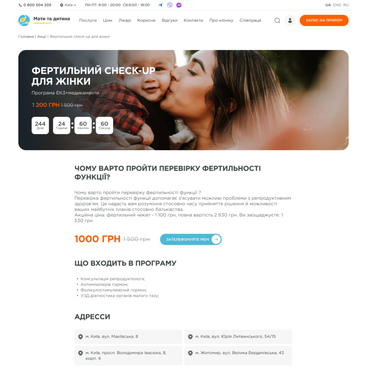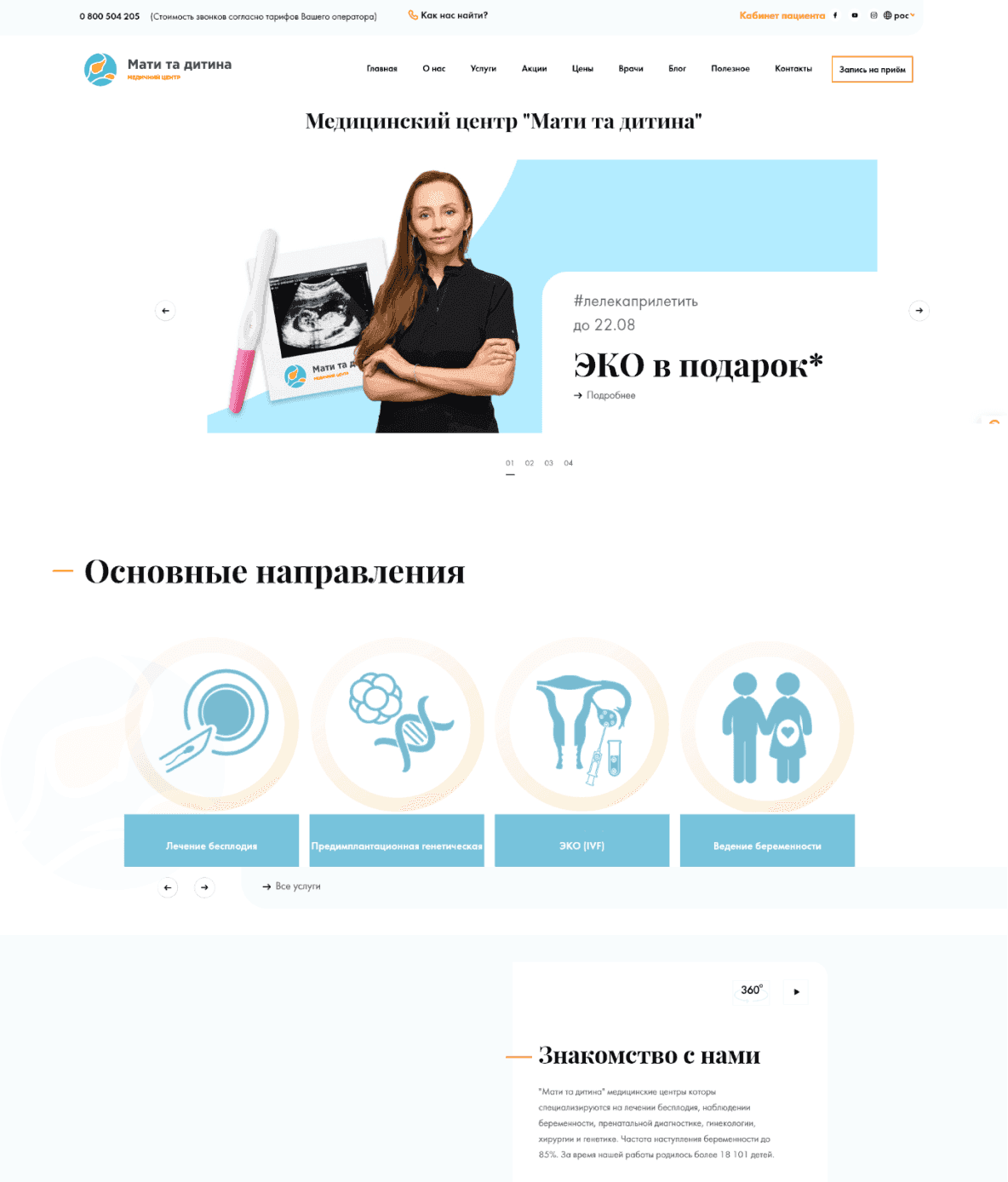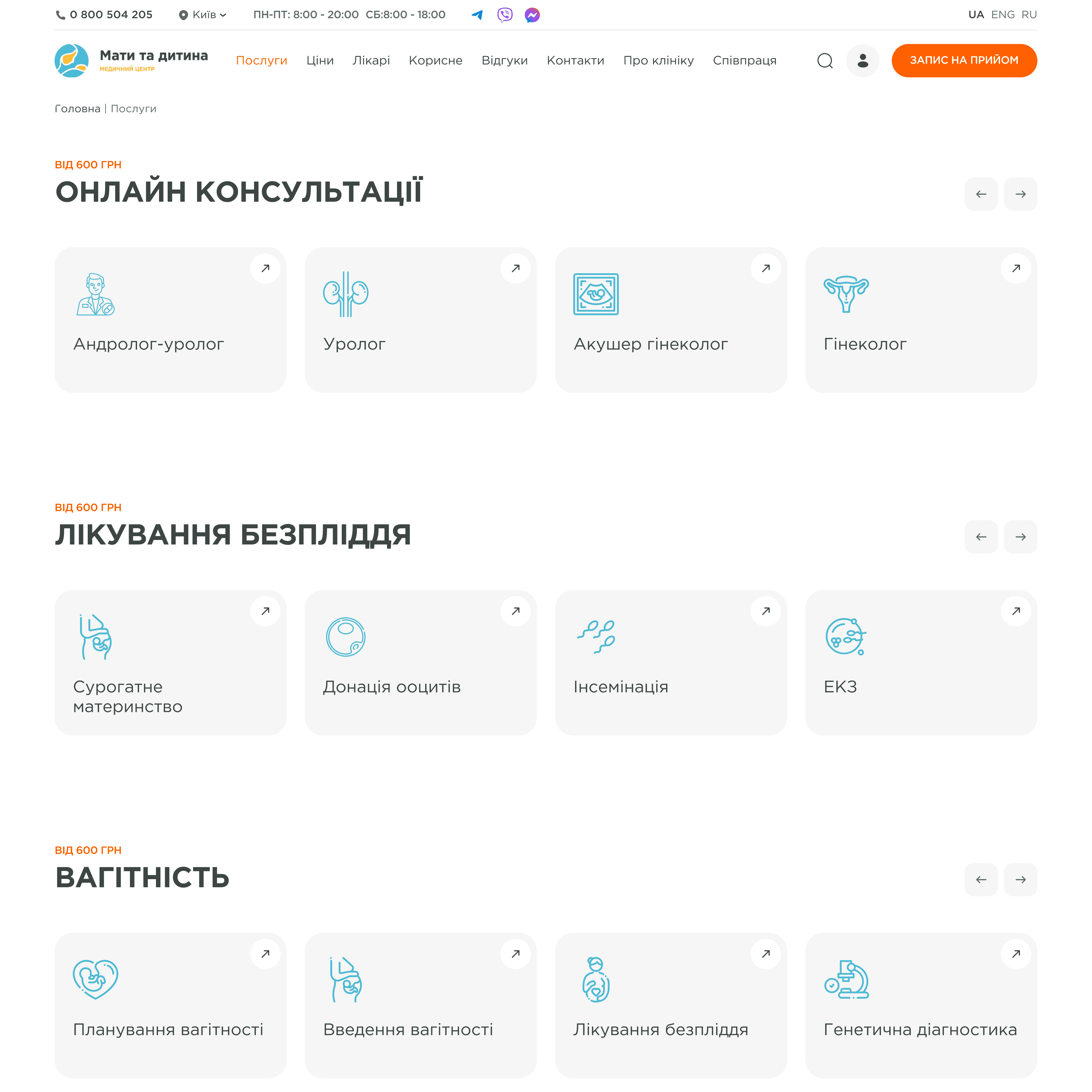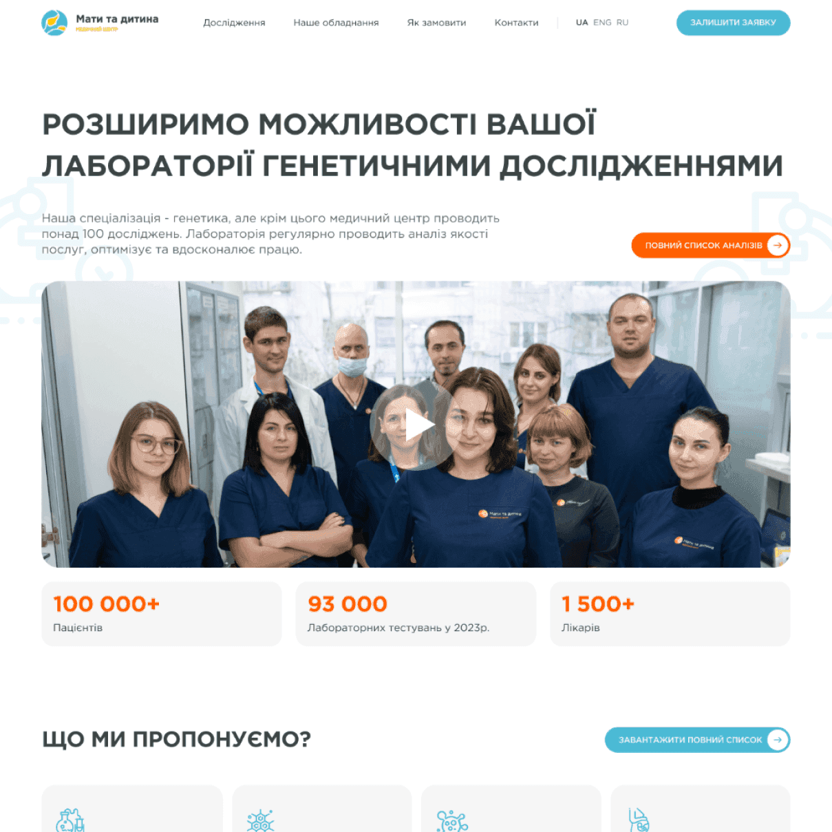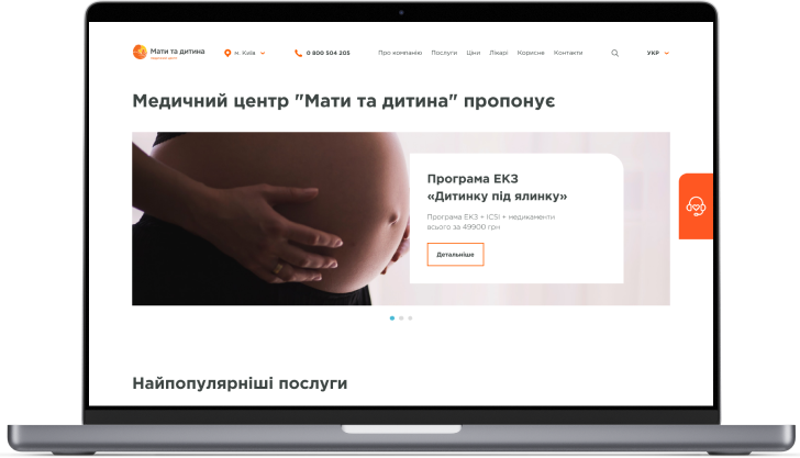 Цей сайт розроблений для медичного центру Мати та Дитина, з метою представлення її послуг, лікарів та можливостей для пацієнтів. Сайт містить інформацію про клініку, її спеціалізації, можливість запису на прийом та інші важливі функції для зручності пацієнтів.