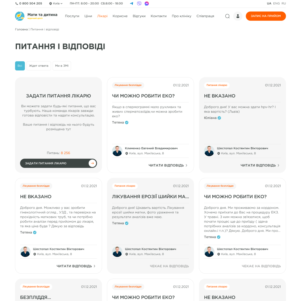 Сайт повністю адаптований під різні типи пристроїв, включаючи мобільні телефони, планшети та комп'ютери. Це дозволяє пацієнтам зручно користуватися сайтом незалежно від того, з якого пристрою вони заходять.