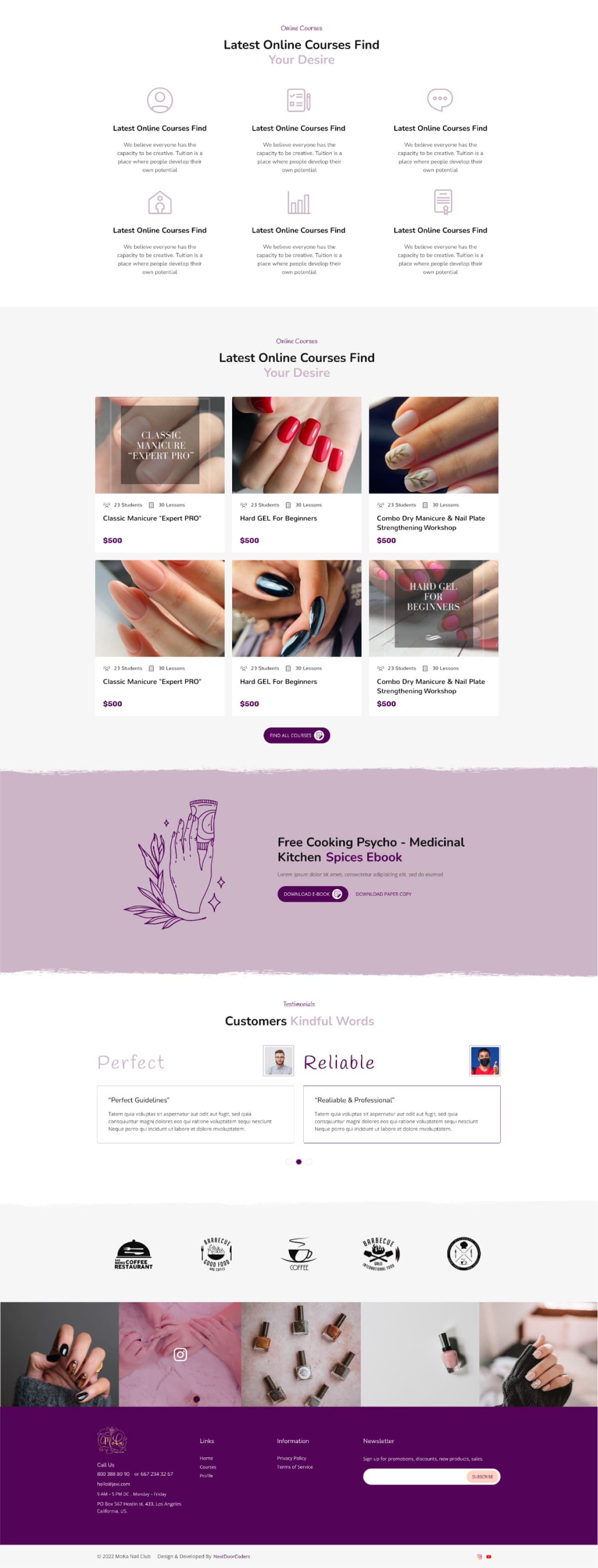 Мы разнообразили главные блоки. Показали описания последних курсов, их цены, количество уроков, блок с электронной книгой, отзывы, фото с инстаграммы и т.д.