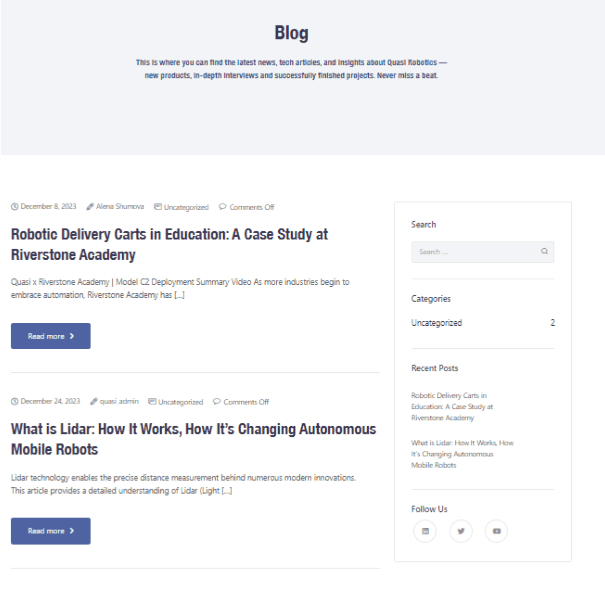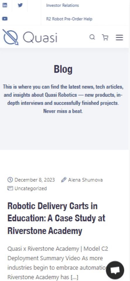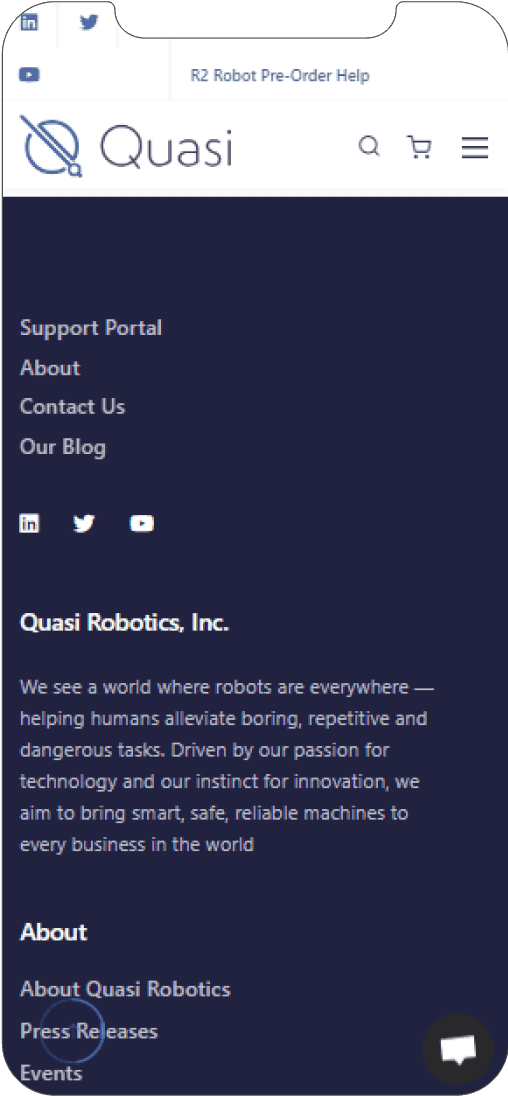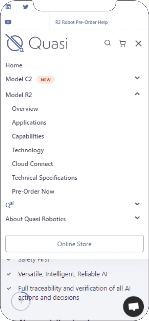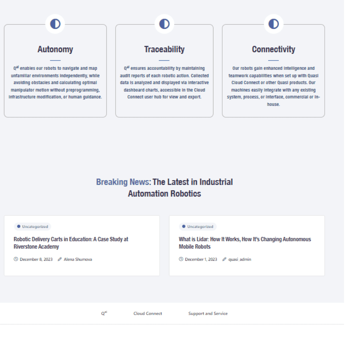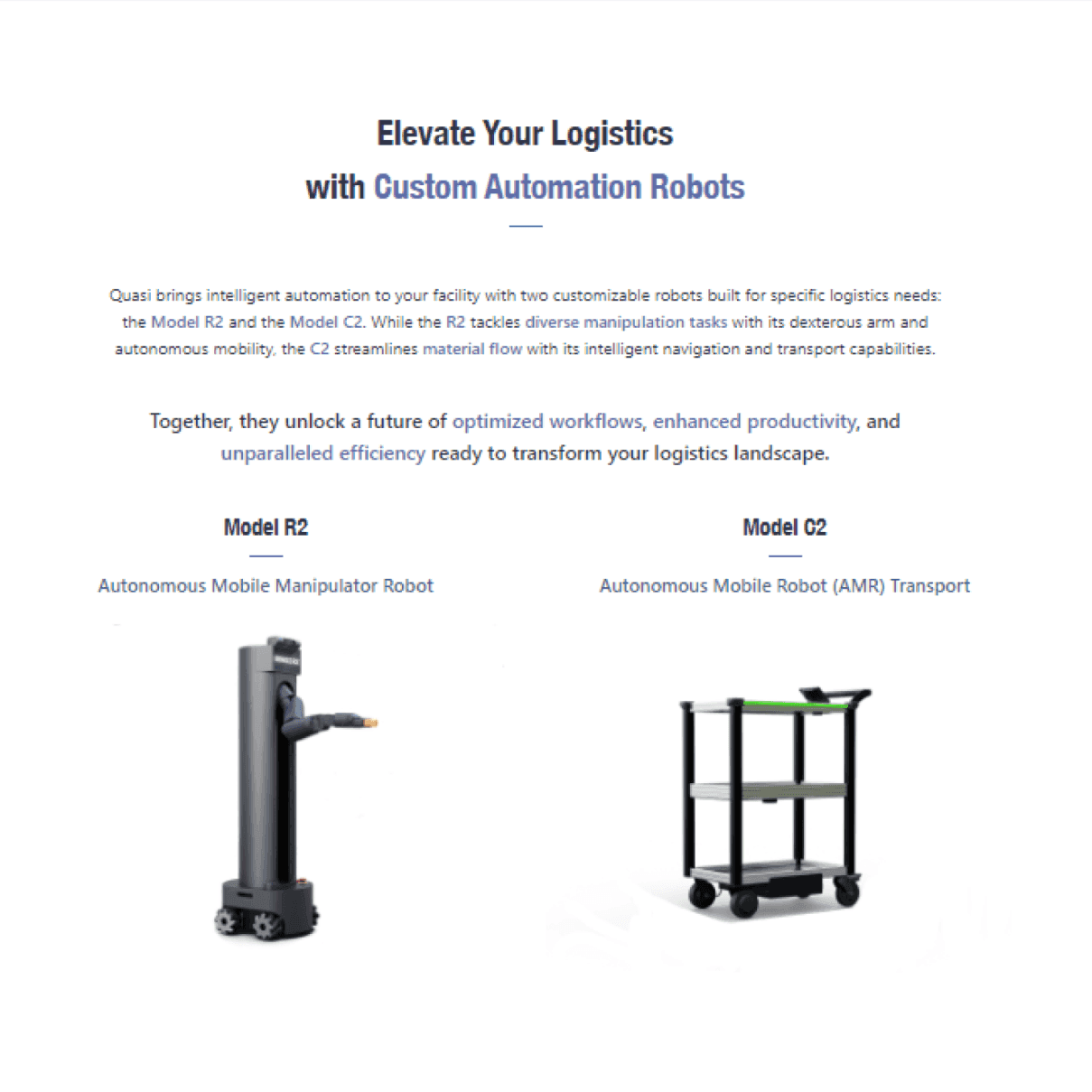 Quasi.ai – це корпоративний веб-сайт та інтернет-магазин для компанії Quasi Robotics, яка спеціалізується на виробництві інноваційних роботів.