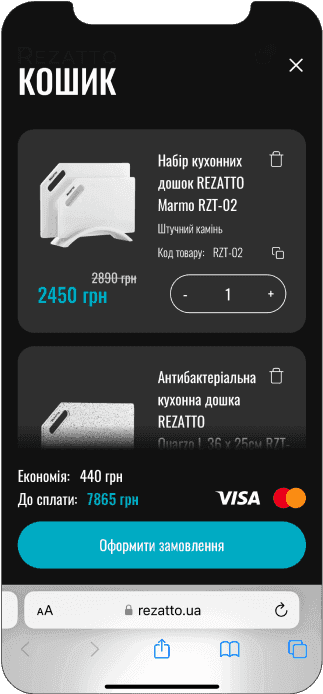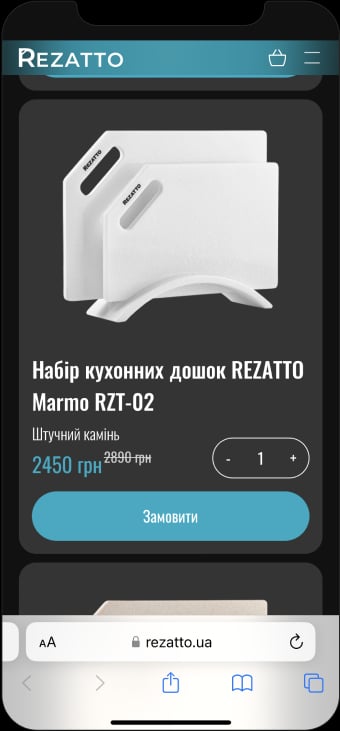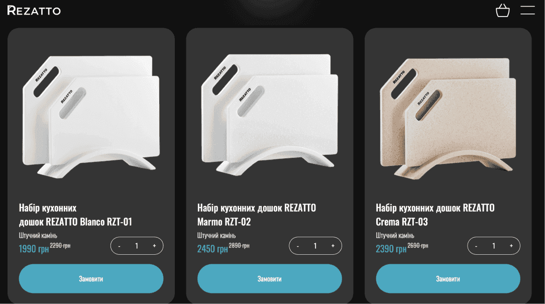 Сайт Rezatto.ua розроблений з урахуванням адаптивного дизайну, що забезпечує коректне відображення та функціонування на різних пристроях – від комп'ютерів до смартфонів та планшетів.