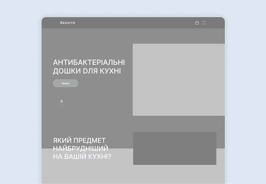 На етапі створення прототипу для Rezatto.ua була розроблена детальна структурна схема сайту, яка включає основні сторінки, такі як головна сторінка, каталог продукції, сторінка товару, кошик та сторінка оформлення замовлення.