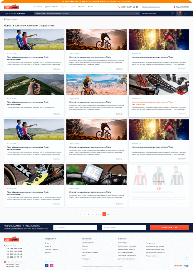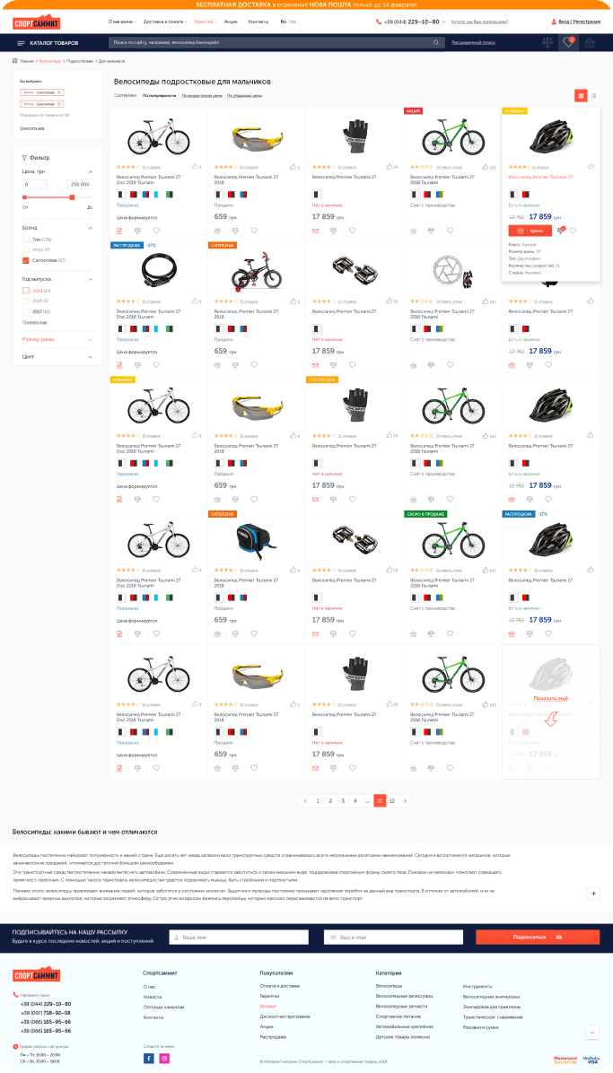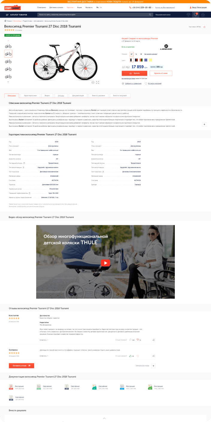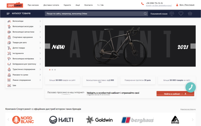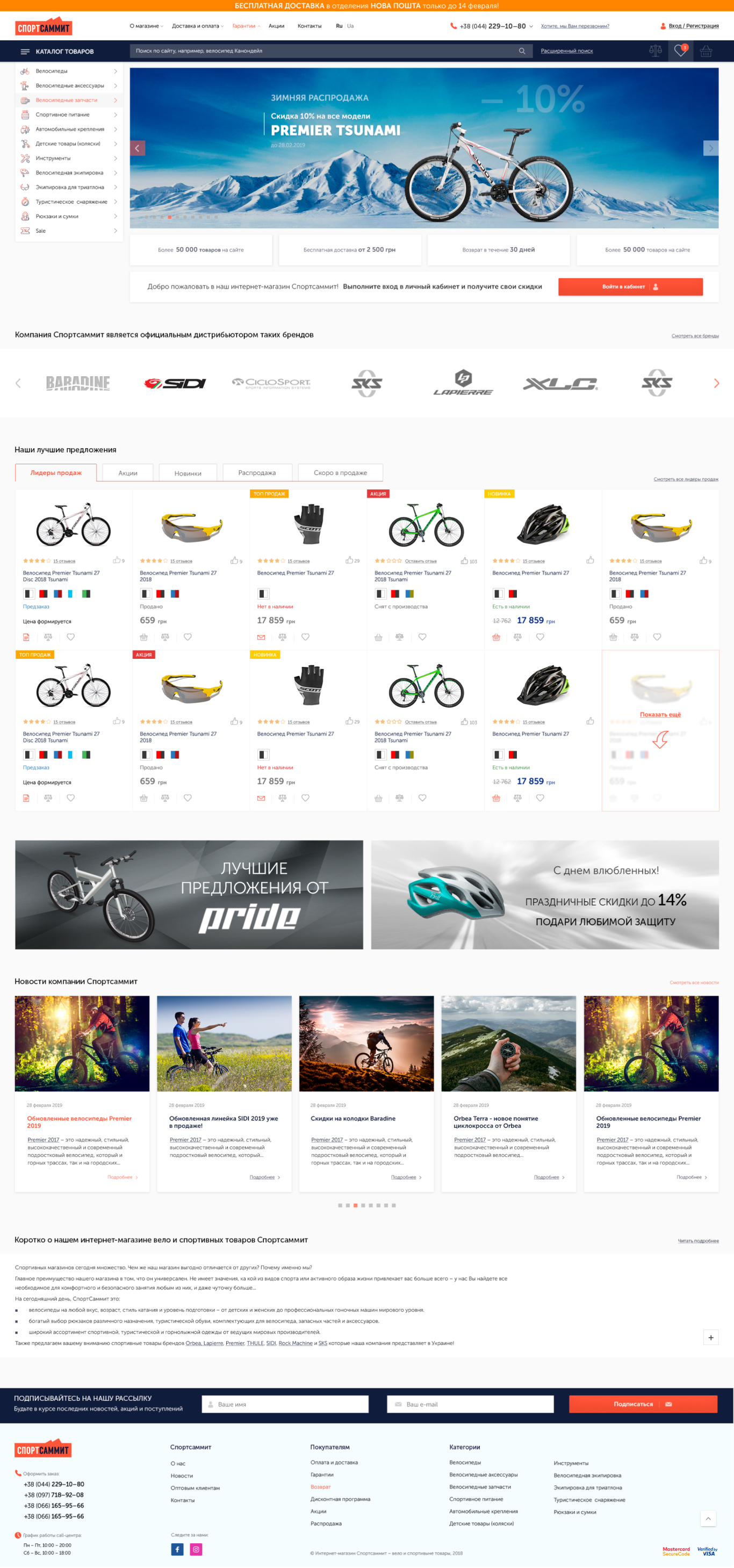 Для популярного в Києві офлайнового магазину SportSummit, який займається продажем велосипедів та спортивного спорядження, нами було розроблено сучасний інтернет-магазин на базі CMS 1C-Bitrix. Сайт обмінюється з 1С, інтегрований з Новою поштою, а також має зручний функціонал створення знижок, комплектів та наборів.