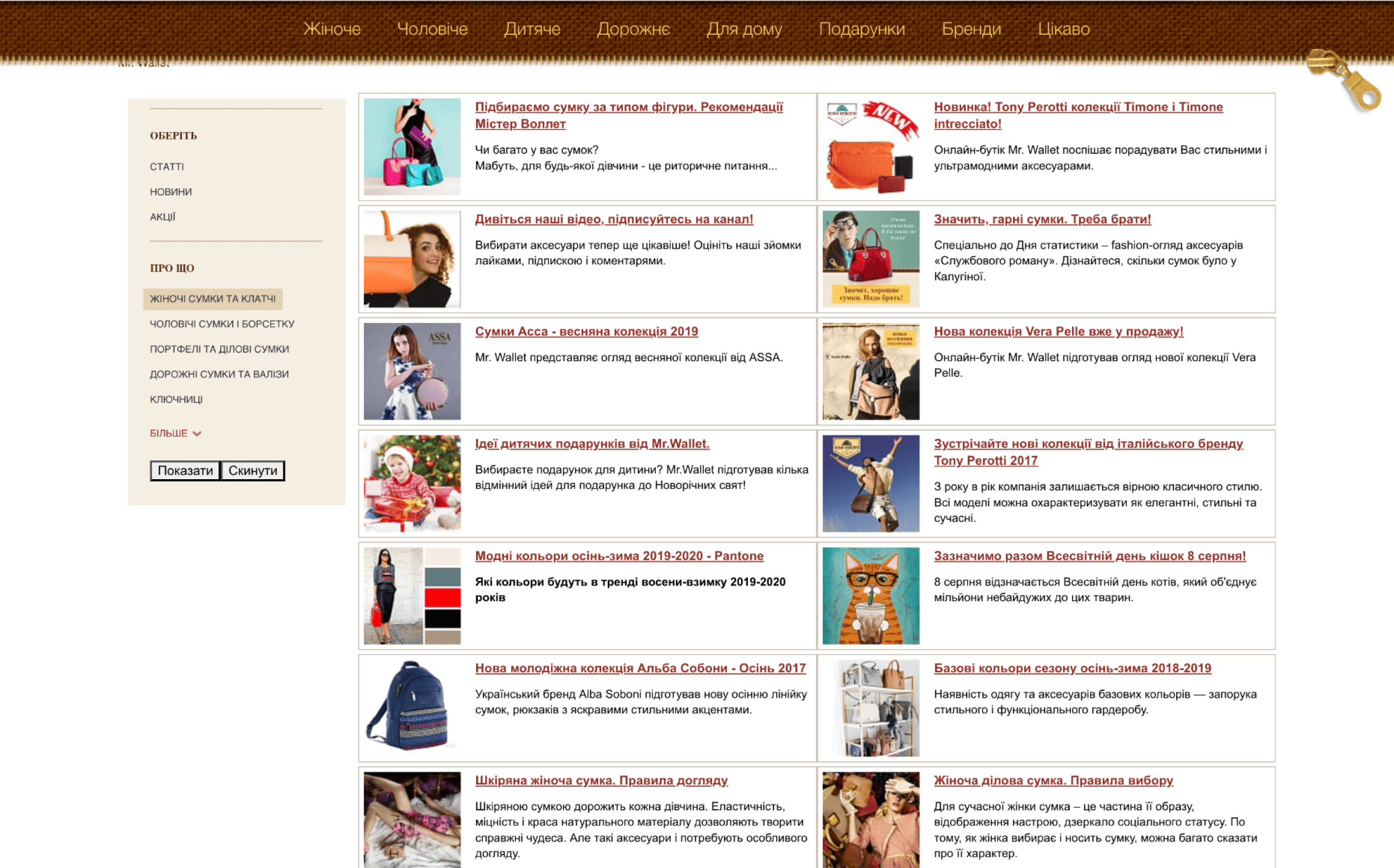 На цій сторінці є багато корисностей для користувача, наше завдання створити зручний фільтр, який допоможе знайти статтю під його запит або рекомендації до вибору товару, новини про знижки та багато іншого.